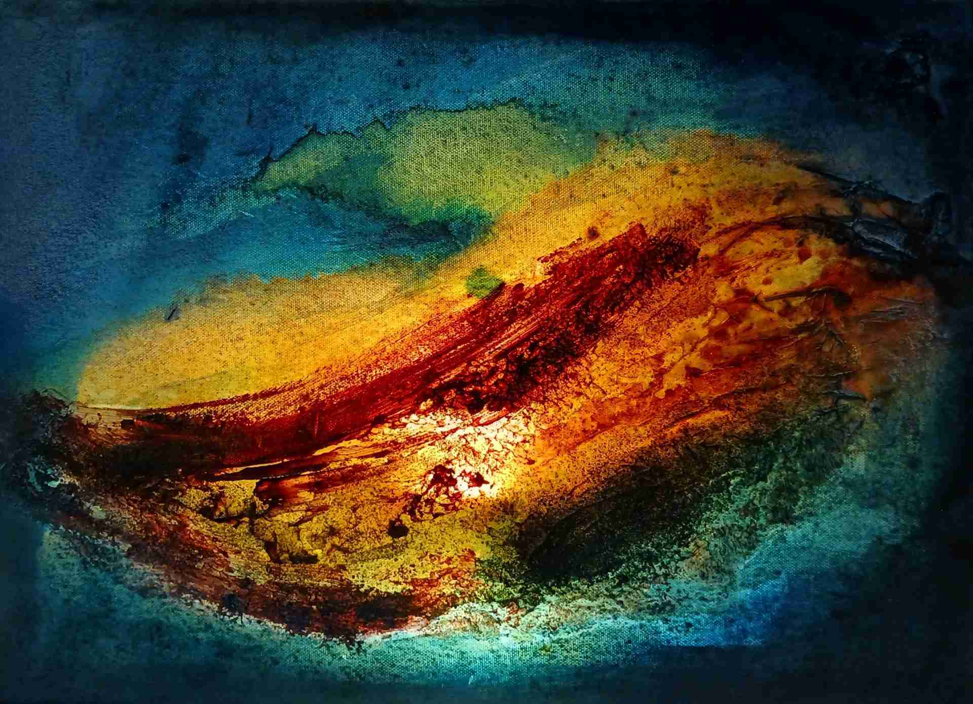 My artwork derives out of a non-linear realm. I never know what will happen, what can happen, when I start to paint. I work without concept, without plan or pre-notion of any result. I open myself for the unkown, I surrender into silence and places beyond my mental constructs of reality.