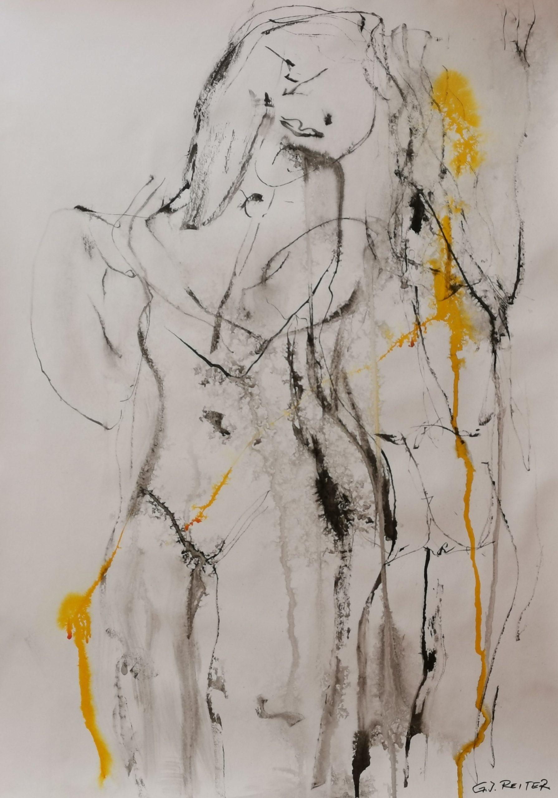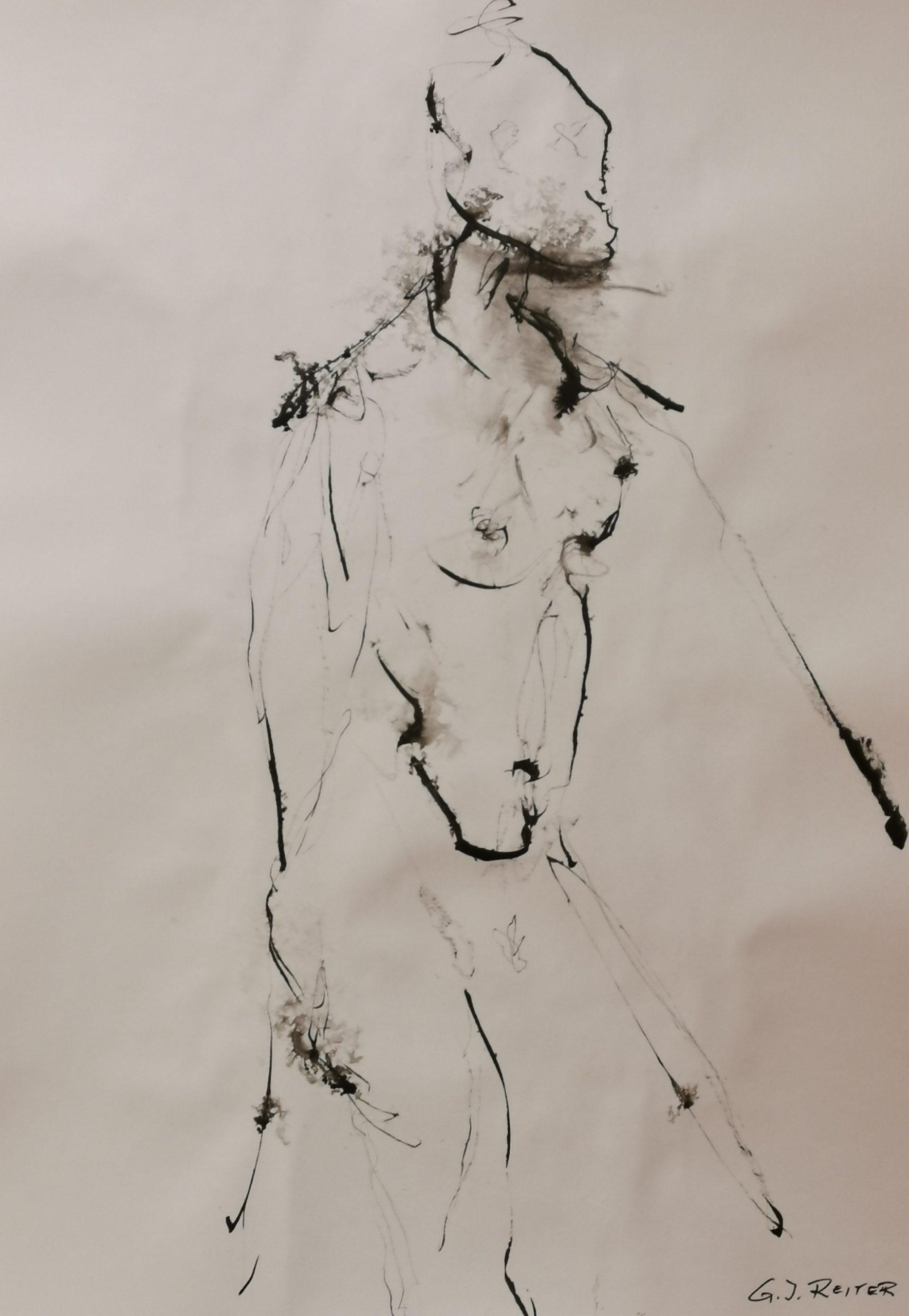 Meine bevorzugten Werkstoffe sind derzeit Graphit, Kohle, Pastell-/Öl-Kreiden, Tuschen, auch Aquarell- und Acrylfarben.