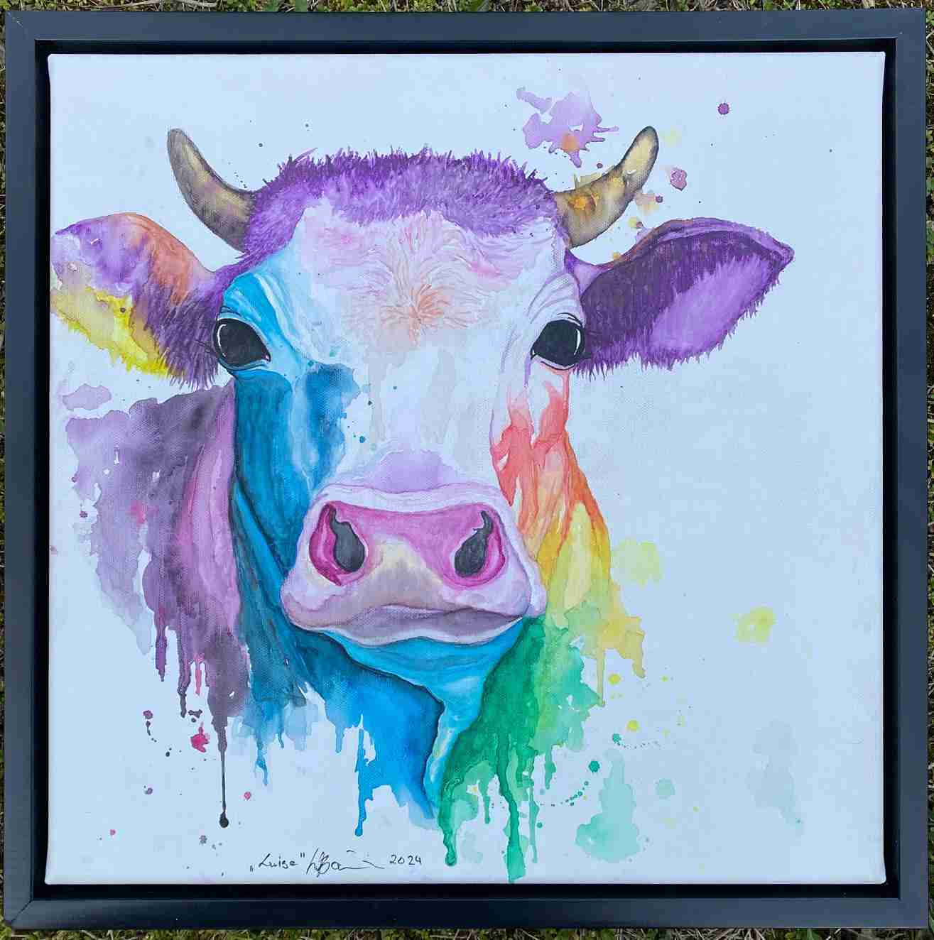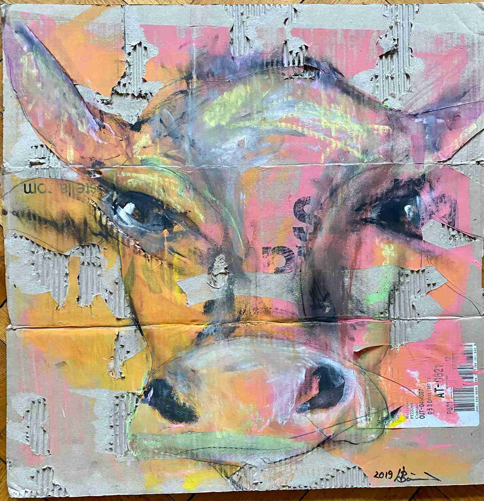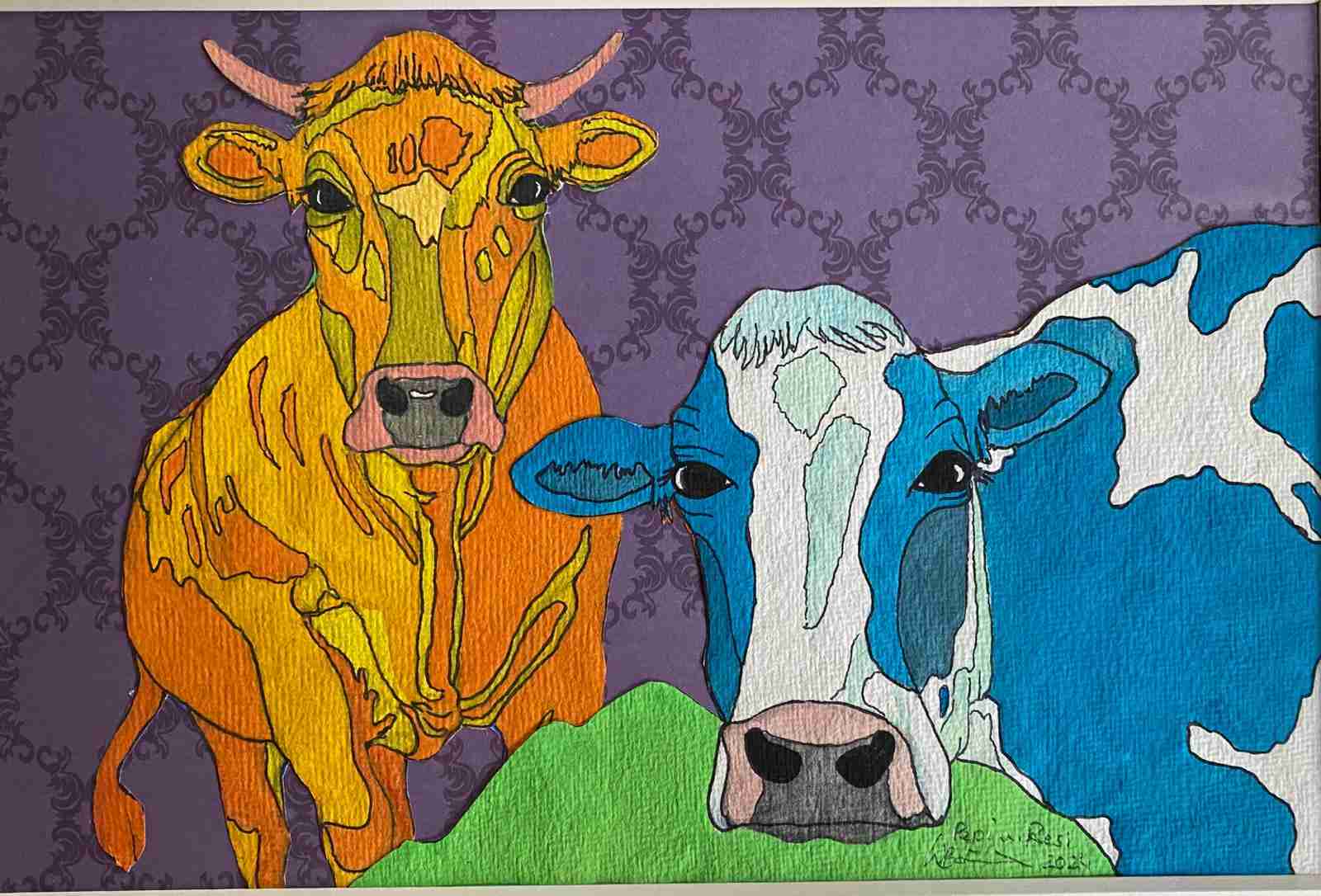 Mein Hauptaugenmerk liegt seit ca. 20 Jahren beim „lieben Vieh“, dabei arbeite ich abhängig von Phasen in Mischtechniken mit Acryl, Ölkreide und Aquarell. Ebenfalls greife ich immer wieder als Untergründe Recycling Material auf, zu dem auch Collagen entstehen!