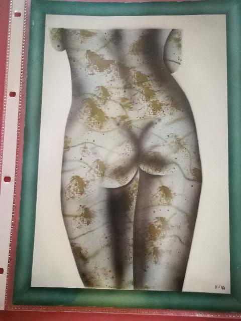 Fotorealismus, sondern auch des Hyperrealismus und später auch der zeitgenössischen Street Art. Der komplizierte Prozess besteht nicht nur darin, Schutzfolien um den Umriss des gewünschten Bildes zu erstellen, sondern auch die Farbe gleichmäßig aufzutragen und den für diese Technik grundlegenden Sprühnebel der Luftpistole meisterhaft zu handhaben. Die Schutzfolien waren die Vorfahren der Schablonen, die von Streetart-Künstlern geschaffen wurden, die angesichts der Transgressivität ihrer Art, Kunst zu machen, eine schnelle Ausführung benötigen, um nicht auf frischer Tat ertappt zu werden. Die scheinbare