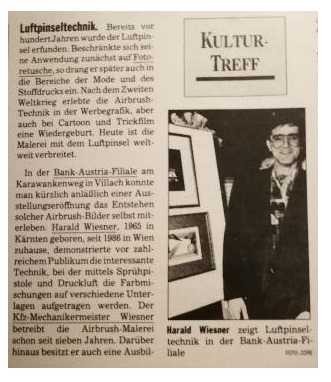 eine Analyse des modernen Lebens zu sein, das Gleichgewicht zwischen der Realität und den imaginären, zwischen Pragmatismus und Träumen, die dem Mann des späten zwanzigsten Jahrhunderts so viel wie die des einundzwanzigsten umhüllten ein , ständig bereit , zwischen Form und Substanz, zwischen dem Hang zur Schönheit und der latenten Frage, wie viel Ästhetik ausreicht, wenn sie keine Substanz enthält . Harald Wiesner, nicht nur Künstler, sondern auch Autor von Kommunikations- und Industriedesignprojekten, ist einer der führenden Airbrusher Österreichs, im Ausland bekannt und geschätzt für seine geheimnisvollen und metaphysischen Kunstwerke . Im Laufe seiner Karriere hat er Gemälde von großer Wirkung geschaffen, die in der Lage sind, den Geist und die Reflexion des Betrachters anzuregen, der sich von dem Rätsel der Bilder des Künstlers umhüllt fühlt. In Red